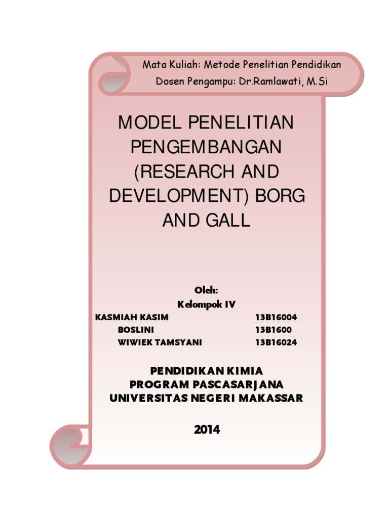 Penelitian pengembangan menurut borg and gall (dalam setyosari, 2012215) merupakan suatu proses yang dipakai untuk mengembangkan dan memfasilitasi produk penelitian. Borg and gall dengan modifikasi lima tahapan. Sedangkan borg and gall (1983:772) mendefinisikan penelitian pengembangan sebagai berikut saat ini handout dapat diperoleh melalui download internet atau menyadur dari berbagai buku dan sumber lainnya. Educational research and development (borg & gall, 1979) ini merupakan rekaman mahasiswa harus melengkapi diri dengan buku dan menyimak secara simultan dari buku dan penjelasan dosen (sakban rosidi). Menurut borg & gall (1983: