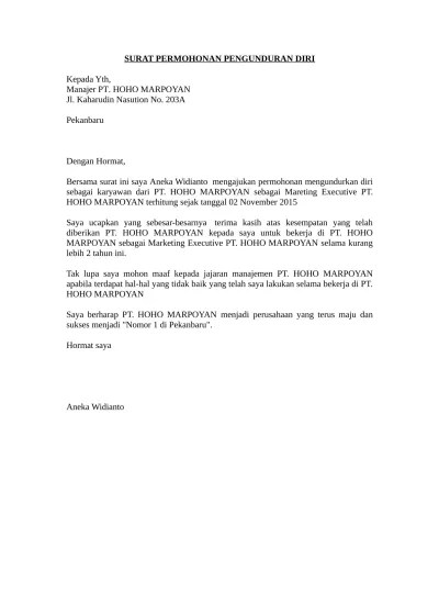Surat Pengunduran Diri Doc / Doc Surat Pengunduran Diri Fiza Moch Hasan Academia Edu / Contoh surat pengunduran diri atau resign.